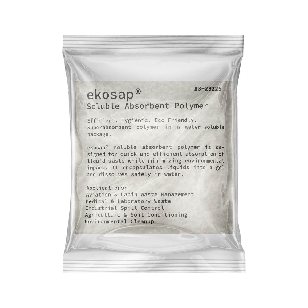 Ekosap Sıvı Emici Torba, küçük hacimli sıvı atıkların hijyenik ve güvenli şekilde bertaraf edilmesi için geliştirilmiş süper emici polimer torbadır. 50 gramlık kompakt yapısı sayesinde deprem, kamp, gezi ve acil durumlarda portatif tuvaletlerde kolayca kullanılabilir.
